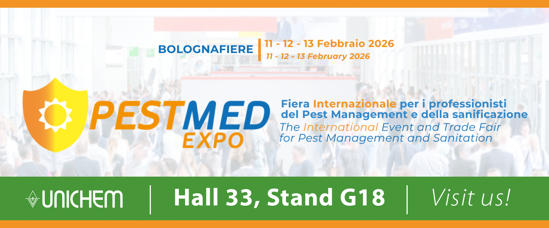 UNICHEM is pleased to announce its participation at Pest Med Expo 2026, taking place from February 11–13, 2026 in Bologna, Italy. As our first trade fair of 2026, this event is an excellent opportunity to start the year strong and connect with partners from Italy and neighbouring countries.